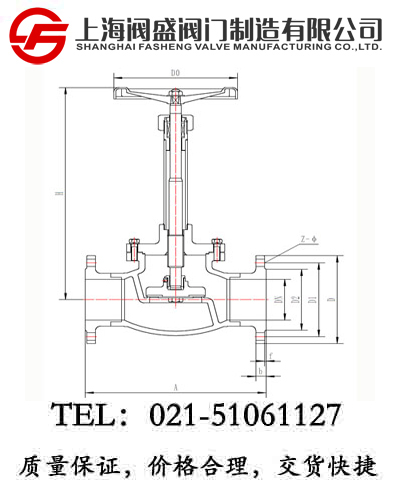 DJ41F-16P 低溫截止閥外型尺寸與連接尺寸