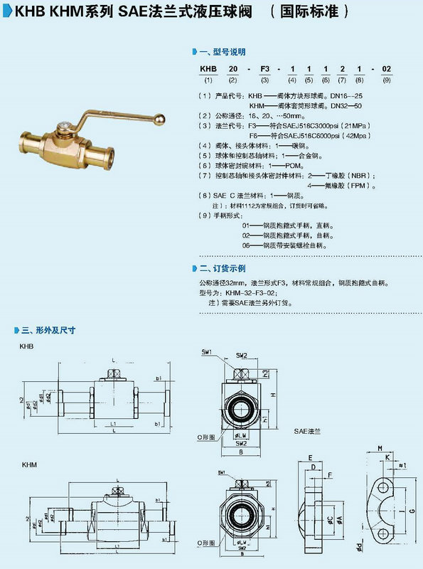 KHB KHM系列SAE法蘭式液壓球閥技術參數(shù)