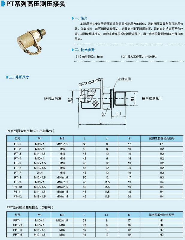 PT系列高壓測(cè)壓接頭技術(shù)參數(shù)